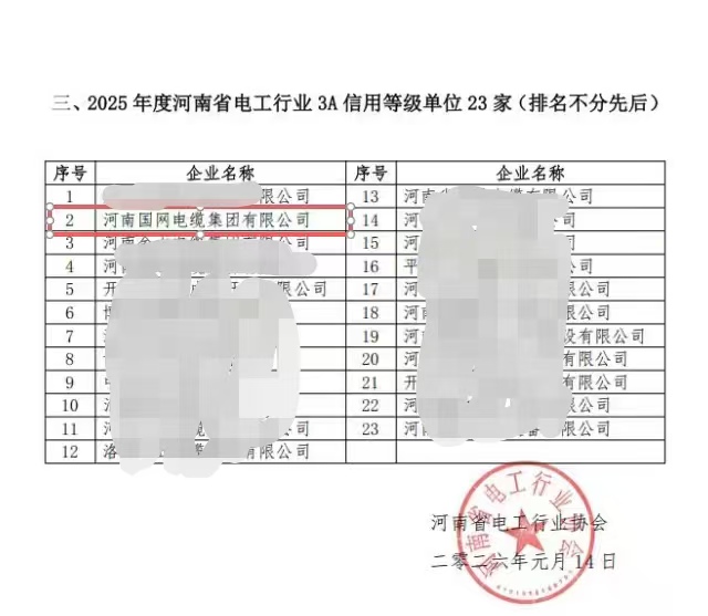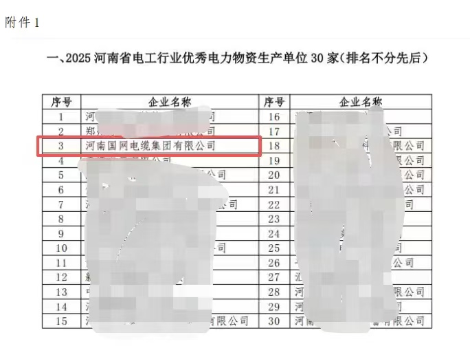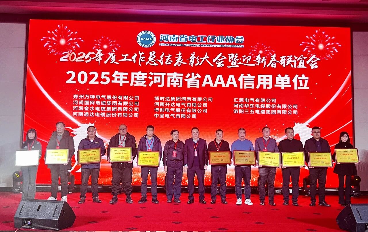 Recently, the list of award winners in the Henan Province electrical industry was officially announced. Henan Guowang Cable Group, thanks to its strong overall capabilities, excellent product quality, and good industry reputation, won two prestigious awards: "2025 Henan Province Excellent Power Equipment Manufacturing Unit" and "2025 Henan Province Electrical Industry 3A Credit Rating Unit," demonstrating the industry's high recognition of the company's achievements.